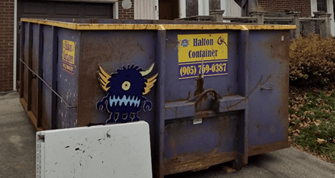 This 4 yard dumpster bin is ideal for soil, concrete, brick and other heavy materials – rent it with a flat rate (for weight) from Halton Container Dumpster Rentals.